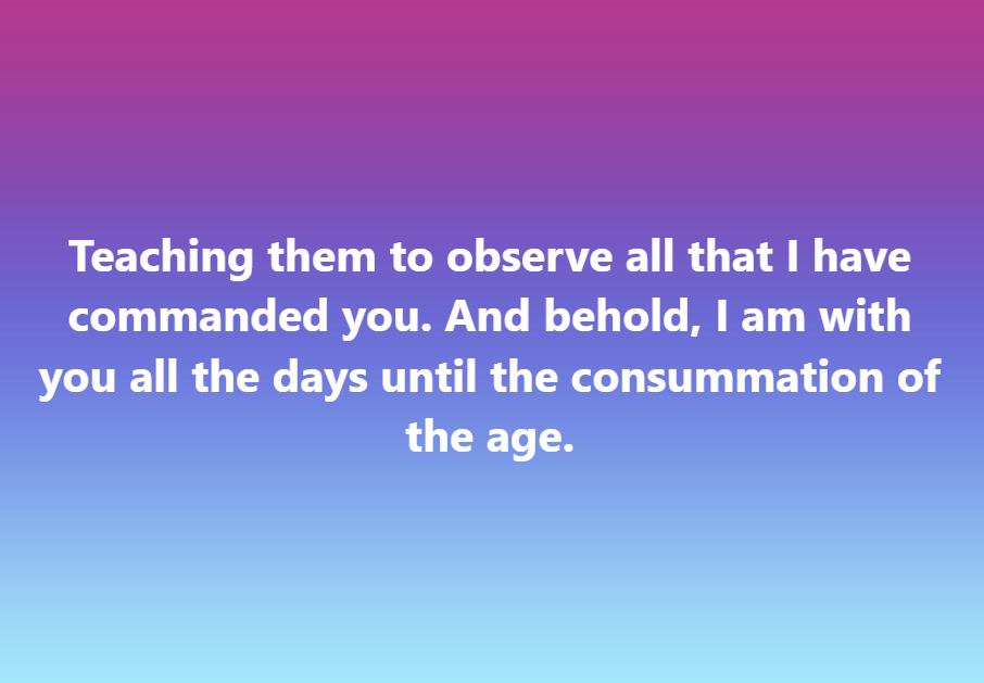 The great commission the Lord gave us is to disciple all the nations, baptizing them into the Triune God, and teaching them to observe all that He has commanded us, for the Lord is with us all the days until the consummation of the age. Amen!
