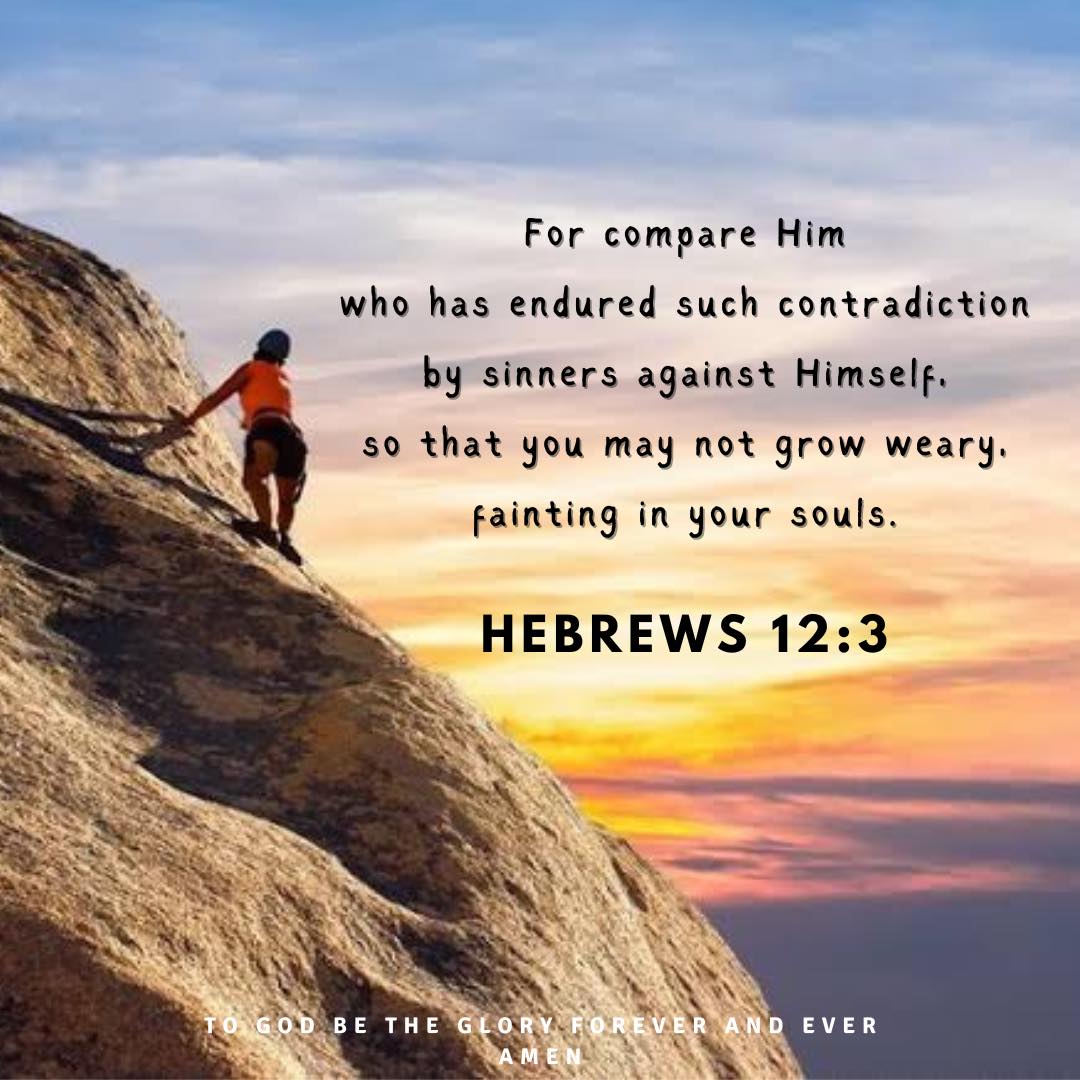 For compare Him who has endured such contradiction by sinners against Himself, so that you may not grow weary, fainting in your souls.