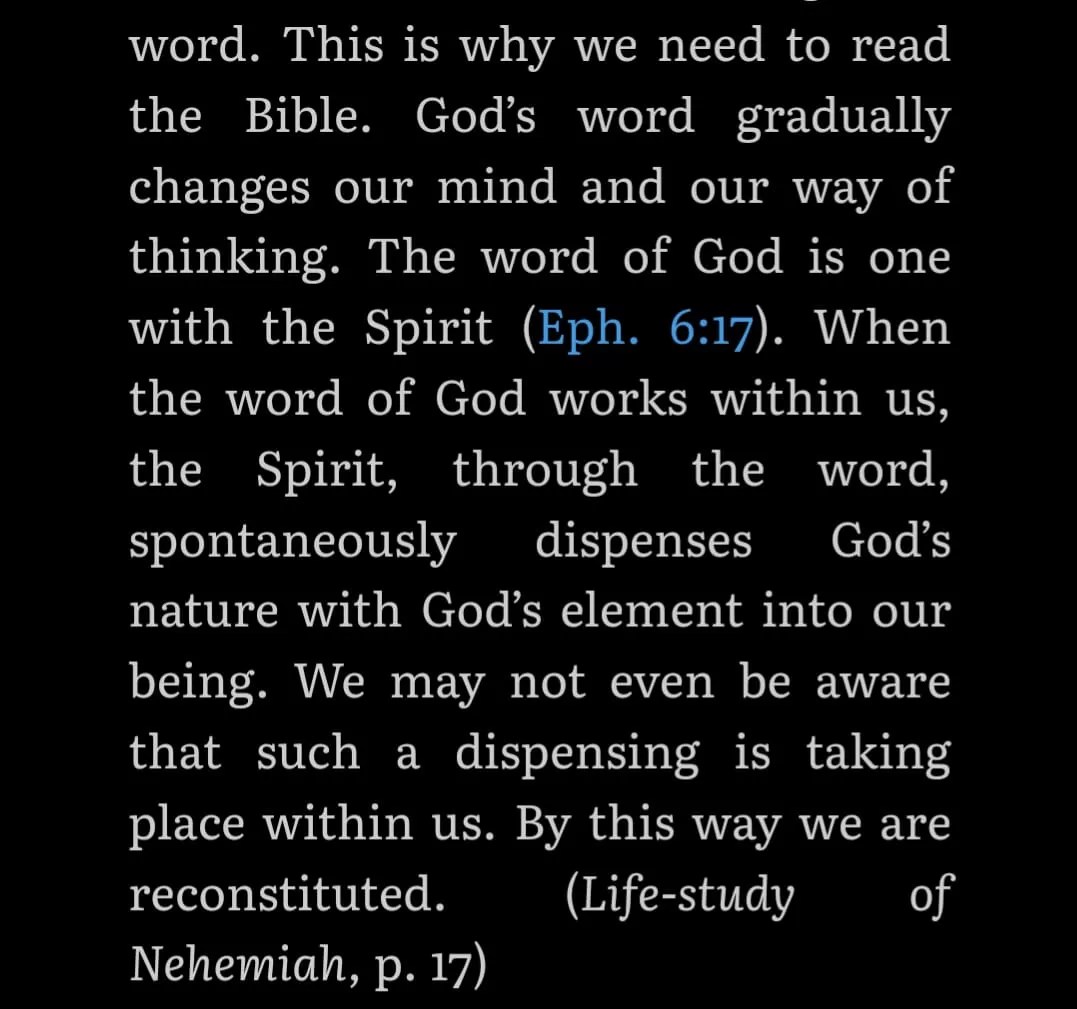 May we take the way of being constituted with the word of God by daily being in His word so that He would work Himself into us and fill us, and so that the word of Christ would richly dwell in us and even overflow through us in our speaking.