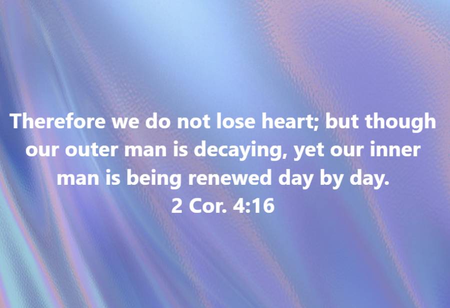 Therefore, we do not lose heart; but though our outer man is decaying, yet our inner man is being renewed day by day (2 Cor. 4:16).
