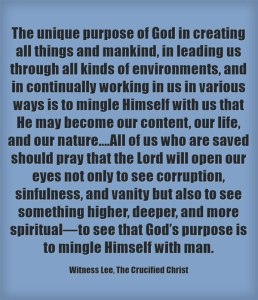 “The focus of God’s economy is the mingled spirit, the divine Spirit mingled with the human spirit (Rom. 8:4)” – this statement is of tremendous importance in our Christian life. Many believers have missed the aim of God’s purpose for their life simply because they don’t see that all our experiences of God are in the […]