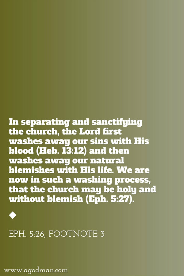 We are being washed by the water in the word of God so that Christ as the life-giving Spirit would dispositionally sanctify us and make us His glorious, spotless, blameless bride. Amen! The holding line in the carrying out of God’s eternal economy in relation to man is the divine sanctification. God is holy; He […]
